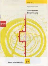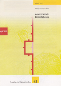 In August 2004, epram.org launched "Abweichende Linienführung", a free magazine project in three issues inspired by the leaflets of the same name found on the city's trams containing details of construction/repair work and rerouting on the network. epram's version was distributed both on the trams themselves and at other locations around town (full list here). Featuring material on the theme of "Cartographic Freestyle" including contributions from: Philip Wincolmlee Barnes // Brixton Moose Society // Roger Frank // GPS Drawing // Nick Grindell // Matthias Hintzen // Seth Kriebel // Sal Randolph // Monika Rinck // socialfiction.org // tsz. // Graphic Design: Roger Frank // Editor: Nick Grindell // Although the copies distributed around Berlin in August have almost certainly disappeared by now, epram still has some. Mail us a request with your address and we'll send you a set. | ||||||||||||||||||||||||||||||||||||||||||||||||||||||||||||||||||||||||||